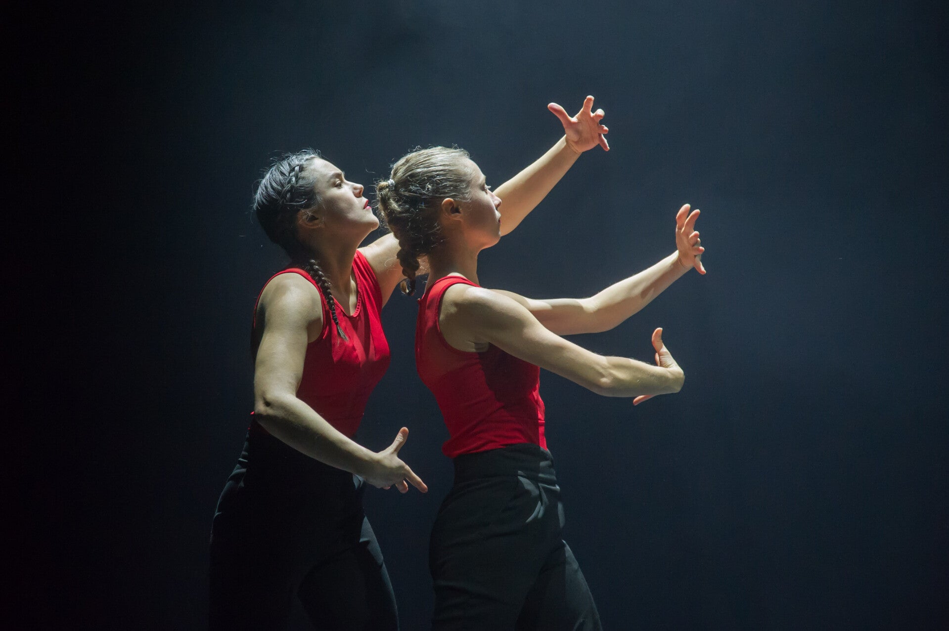 Nous reprenons cette dualité au cœur de notre processus chorégraphique. On en finit par se demander s'il s'agit de deux soeurs qui se disputent ou si ce sont les deux facettes d'une même personne qui s'expriment.