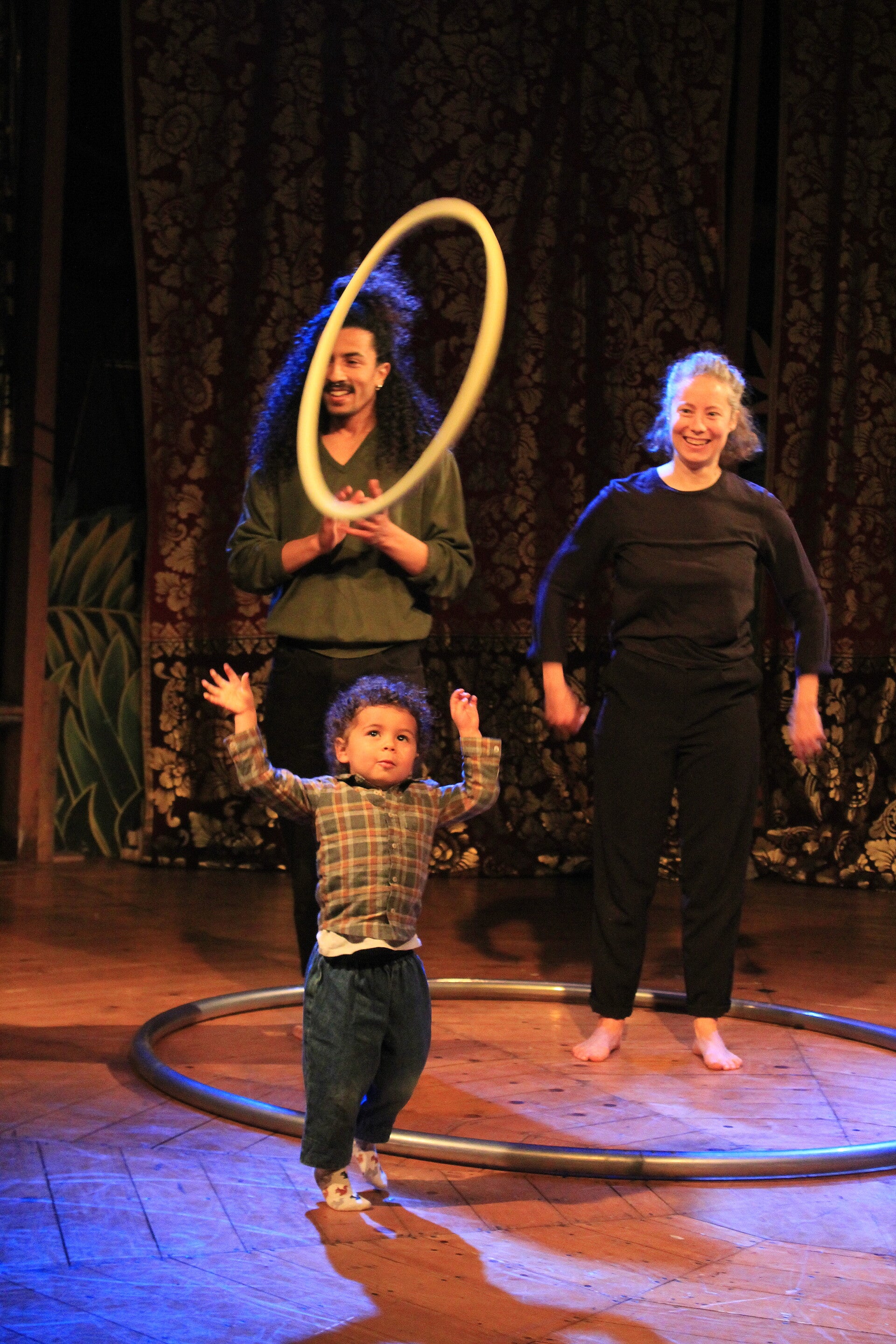 Dans ce spectacle Camille et Youness mettent en résonance les mouvements sonores et spatiaux qui découlent de la forme circulaire avec leur sens, émotions et imaginaires. Ils jouent sur les axes et la vitesse de rotation, la gravité, la taille et l'esthetique des objets. Avec la participation du public, ils organisent ces corps-objets dans un certain espace-temps. Une relation basée sur l’écoute, l’entraide et la bienveillance se construit. A la fin du voyage, ils proposent un bord plateau afin de partager un temps d’échange avec le public. Des actions culturelles peuvent aussi avoir lieu en amont ou en aval du spectacle.